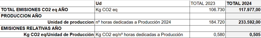 | Justificación del cambio de ano base | Se considera que ha habido cambios significativos desde 2020 respecto a la variable considerada (el n° horas dedicadas a Producción). En 2024 ha habido un incremento significativo de la actividad, tanto en personal / horas de producción, como en facturación, respecto del 2023. |